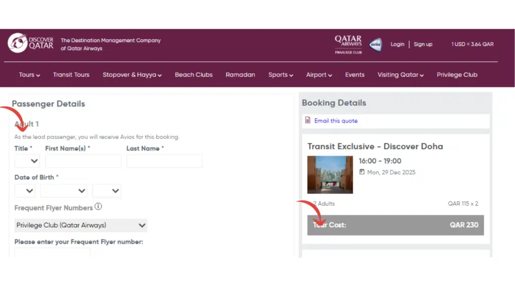 - Booking on Qatar Airways.